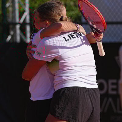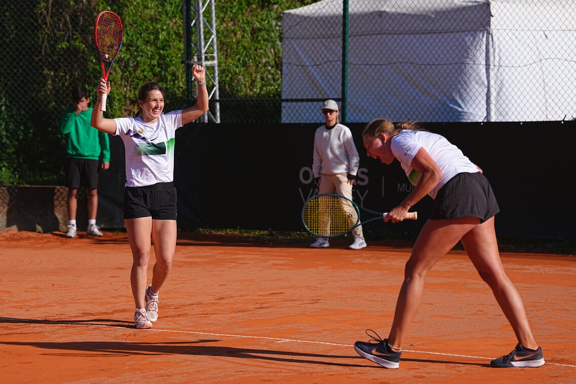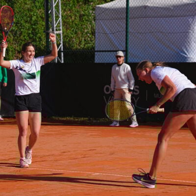Lietuvių ir vokiečių susitikimo baigtis sprendėsi dvejetų mače. J. Mikulskytė ir A. Lukošiūtė 5:7 6:3 10:8 įveikė N. Akugue ir Nastasją Schunk (WTA-361).